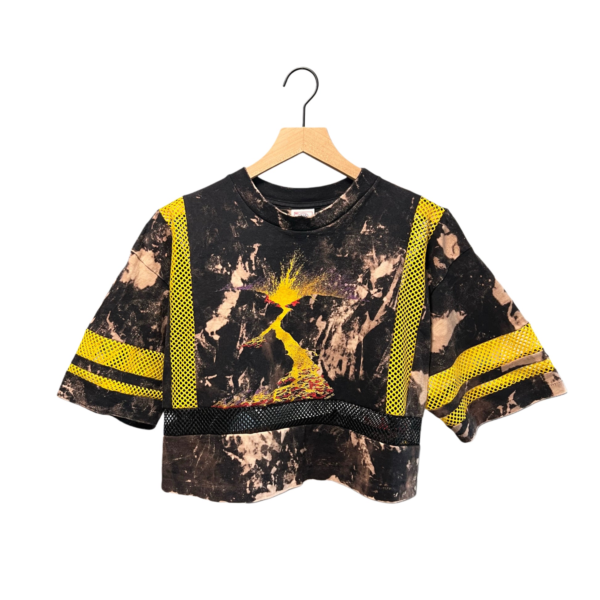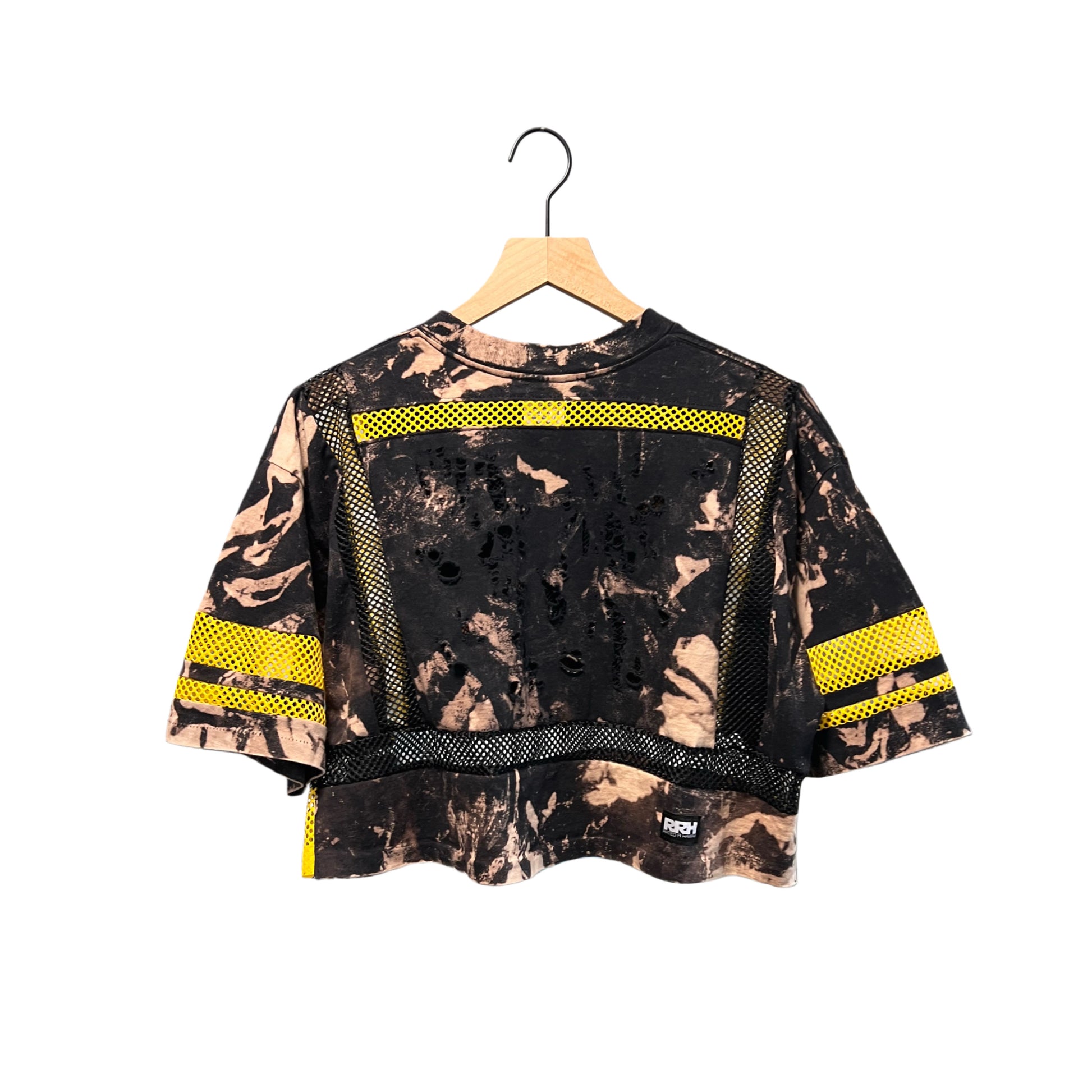 Upcycled crop top bleached, distressed and w/added mesh inlays